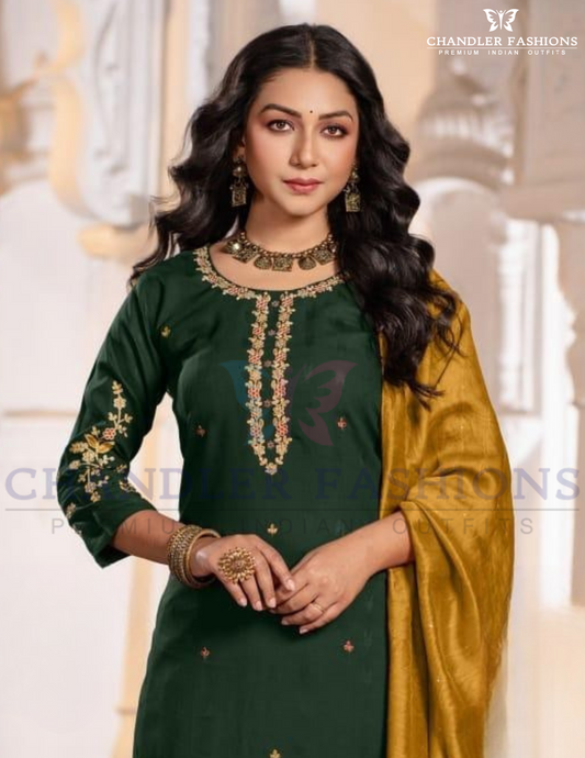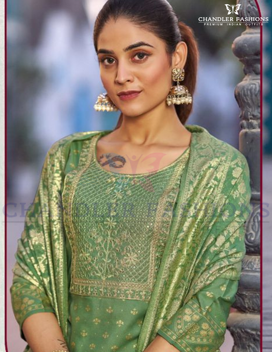 Alluring Green Color Embroidery Work Salwar Suits With Dupatta