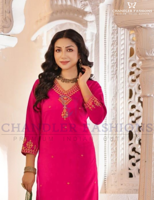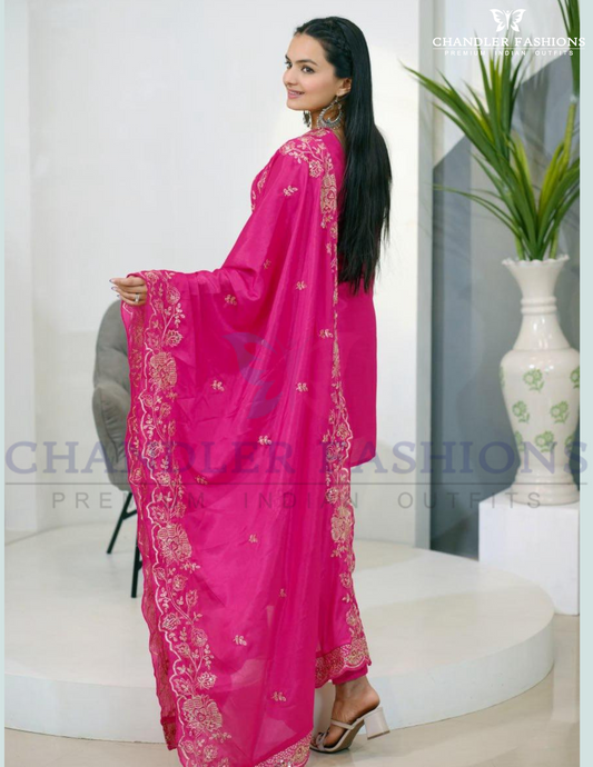 Attractive Rani Pink Color Embroidery Work Salwar Suits With Dupatta