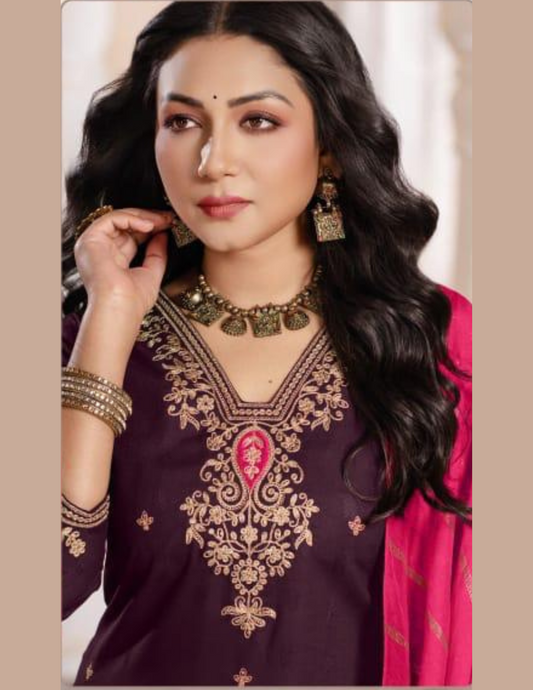 Attractive Purple Color Embroidery WorK Salwar Suits With Dupatta