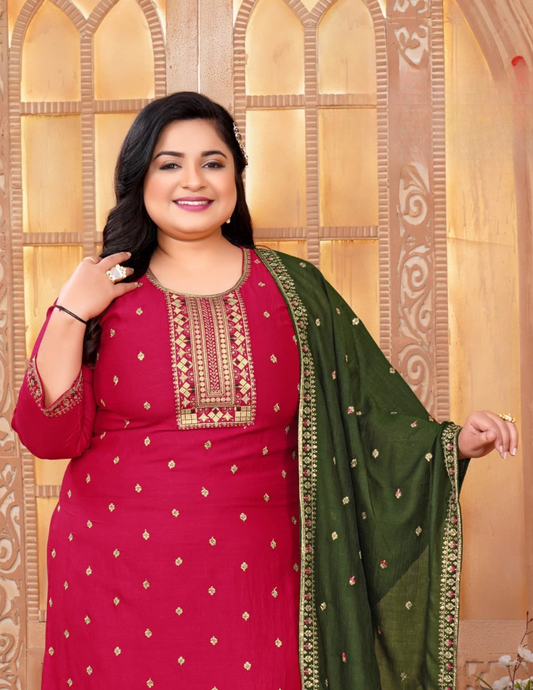 Beautiful Red Color Silk Salwar Suits With Banarasi Dupatta For Women