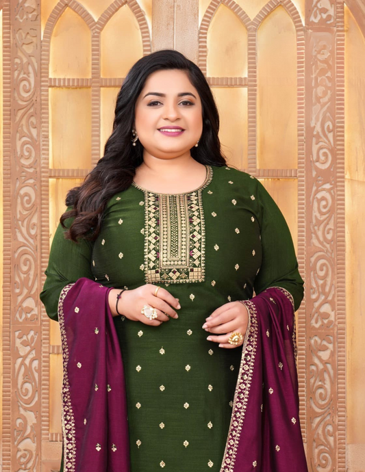 Alluring Mehendi Green Color Sequins and Zari Embroidery Work Salwar Suits With Dupatta