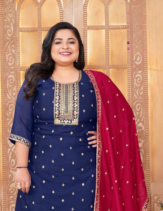 Charming Navy Blue Color Sequins and Zari Embroidery Work Salwar Suits With Dupatta
