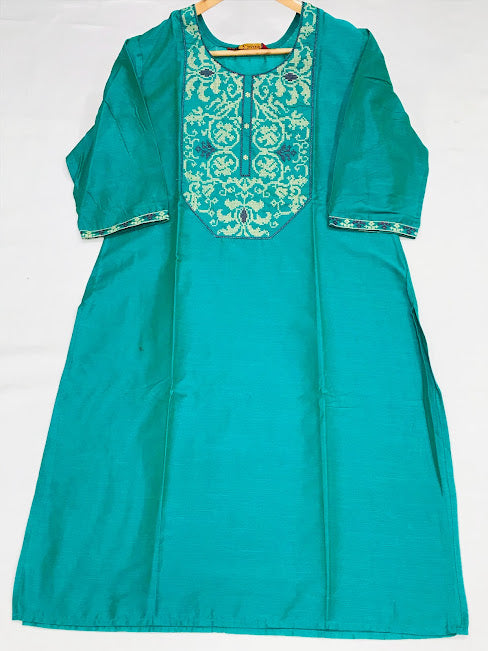 Gorgeous Teal Blue Color Rayon Kurti With Embroidery Work For Women