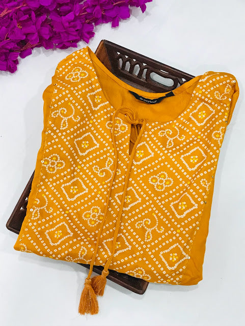 Alluring Yellow Color Rayon Kurti With Printed Work For Women