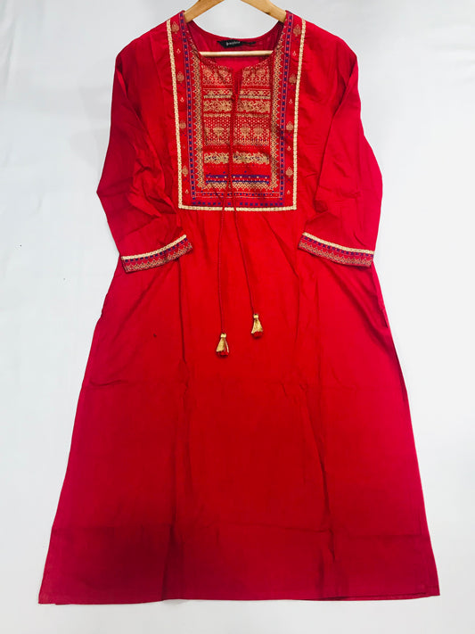 Pretty Yellow Color Aura Silk Kurti With Red Border