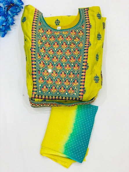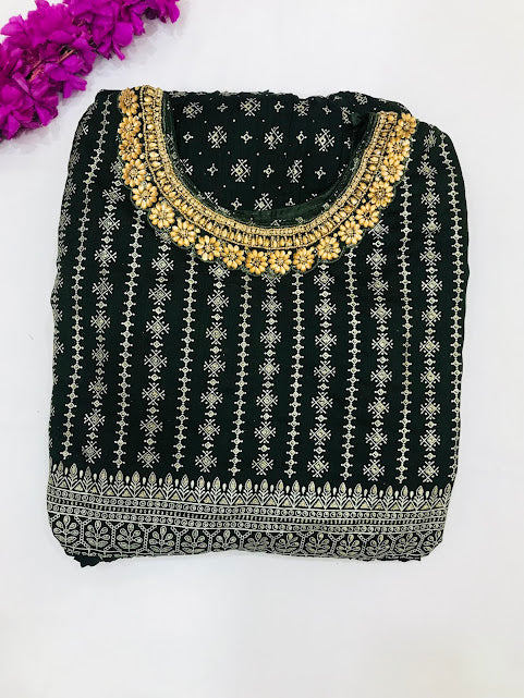 Elegant Dark Green Colored Embroidery Work With Silk Cotton Kurti Suit For Women