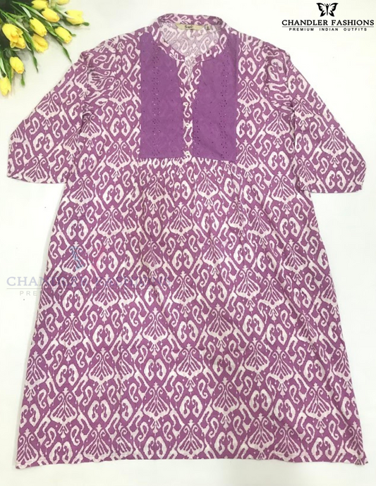Alluring Light Purple Color Self Designed Cotton Kurti For Women