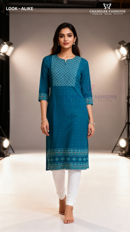 Charming Blue Color Cotton Kurti With Embroidery Work For Women