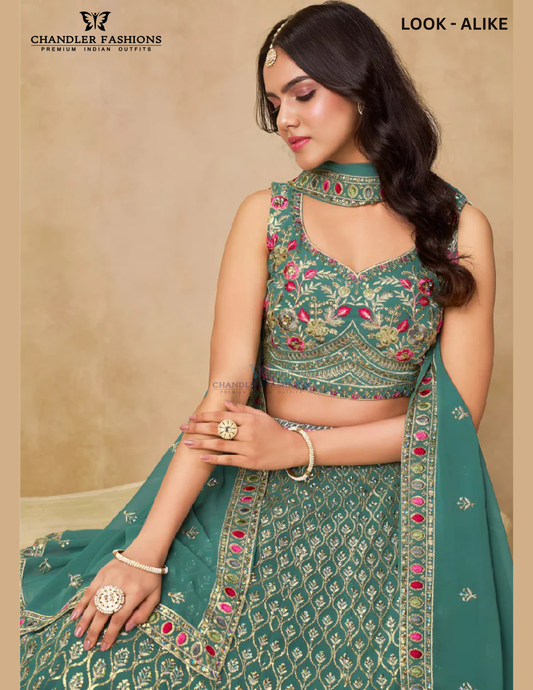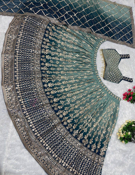 Appealing Teal Green Color Georgette With Embroidery And Sequins Work Lehenga Choli For Women
