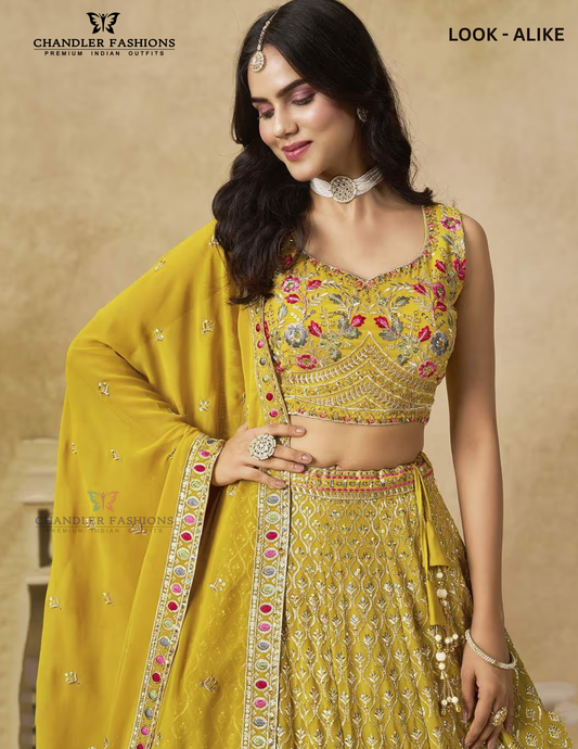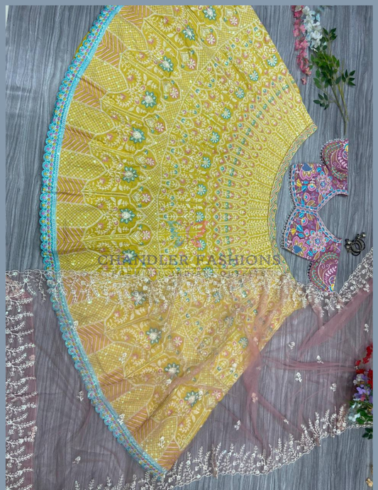 Amazing Yellow Color Georgette With Embroidery And Sequins Work Lehenga Choli For Women