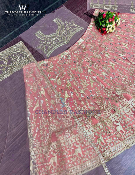 Beautiful Pink Color Soft Net With Embroidery And Sequins Work Lehenga Choli For Women