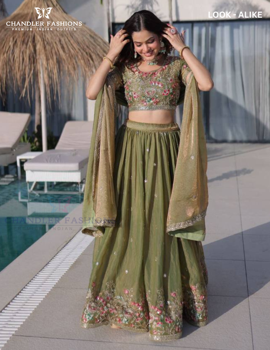 Attractive Pista Green Color Fendi Silk With Embroidery And Thread Work Lehenga Choli For Women