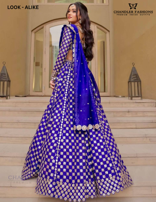 Attractive Royal Blue Color Embroidery And Mirror Work Lehenga Choli For Women
