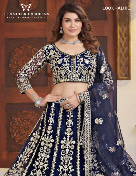Wonderful Blue Color Butterfly Net With Embroidery And Sequins Work Lehenga For Women