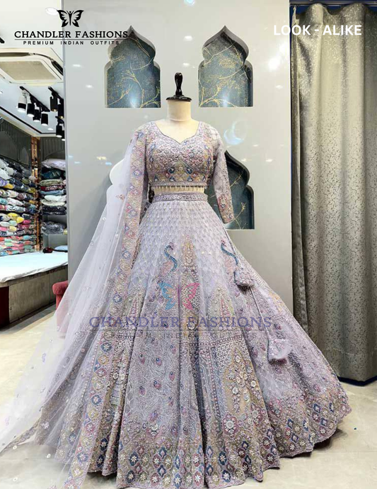 Elegant Lavender Color Net With Embroidery And Sequins Work Lehenga For Women