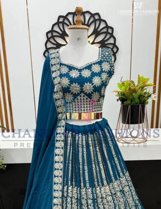 Elegant Blue Color Heavy Embroidery Sequins Work Wedding Lehenga Choli