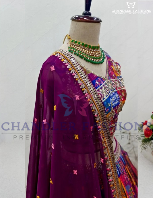 Stunning MultiColor Heavy Gamti Work Chaniya Choli Set For Women