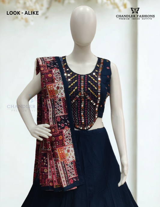 Attractive Black Cotton Garba Lehenga Choli For Women