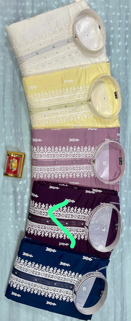 Elegant Light Yellow Color With Cotton Embroidery Work Kurta Suits For Men