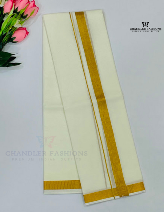 Attractive Men's Cotton Angavastram White With Gold Zari Border