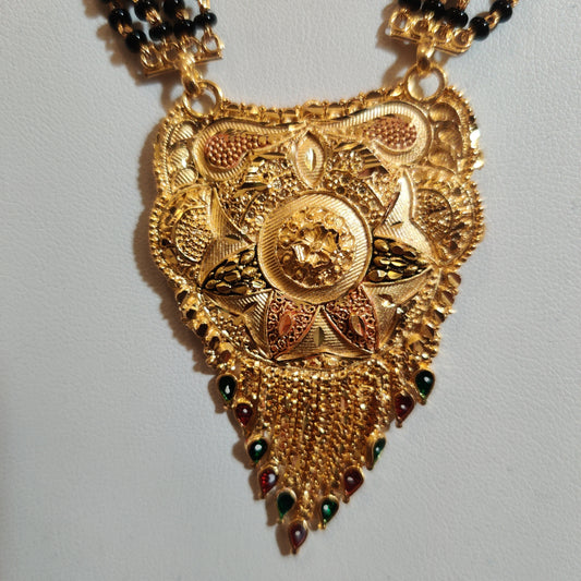 Attractive Black Beaded Long Chain Gold Plated with Beautiful Pendant