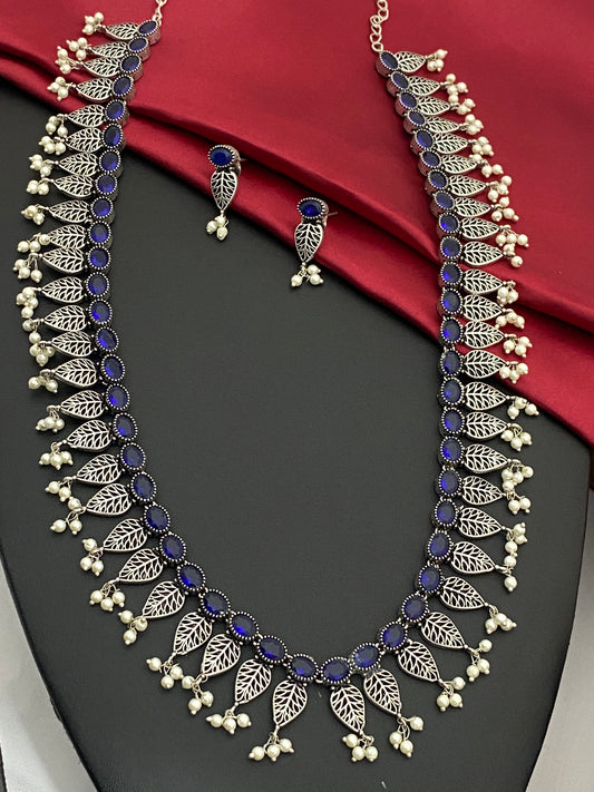 Beautiful Oxidized Blue Color Long Chain With Earrings