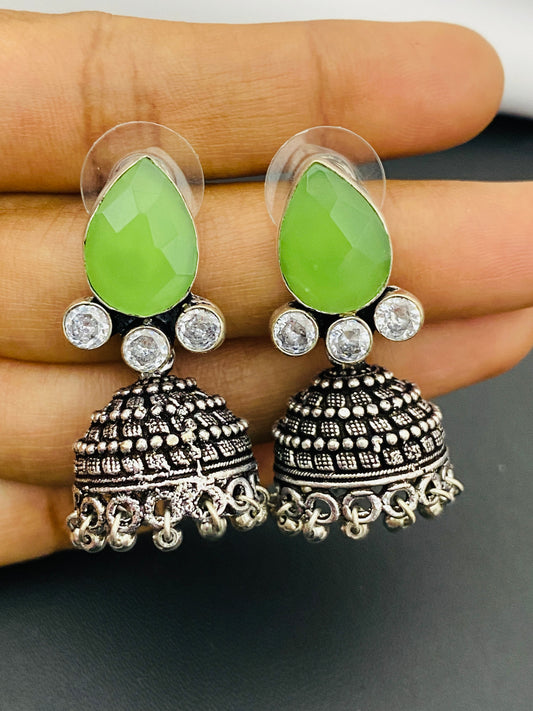 Alluring Green Color Stoned Oxidized Earrings For Women