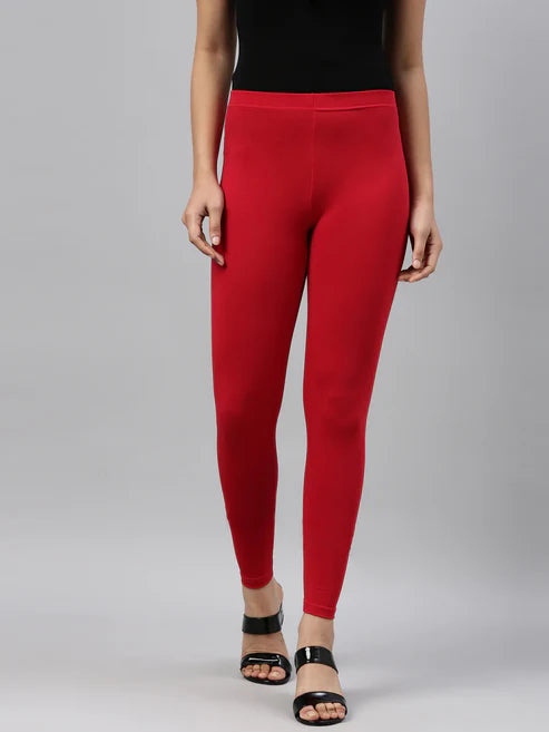 Stunning Red Colored Stretchable Rayon Elastane Leggings For Women