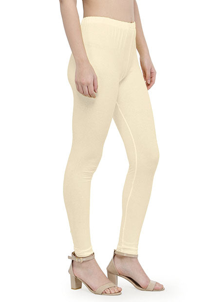 Beautiful Off White Colored Solid Cotton Leggings For Women