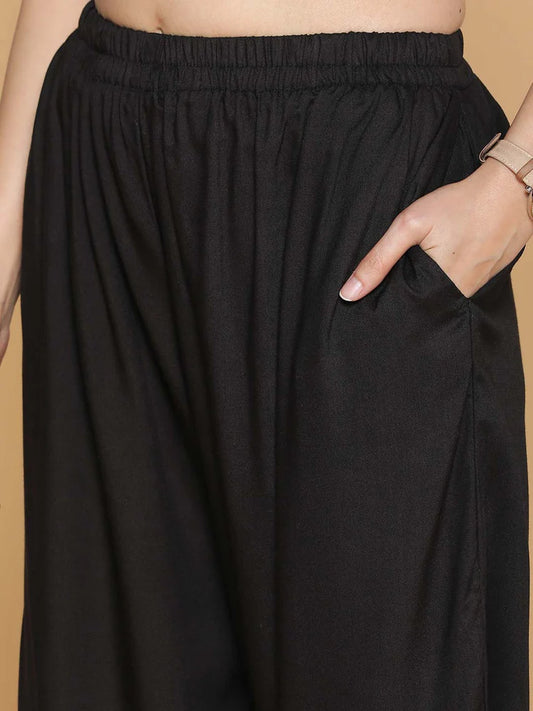 Elegant Black Colored Rayon Palazzo Pant For Women