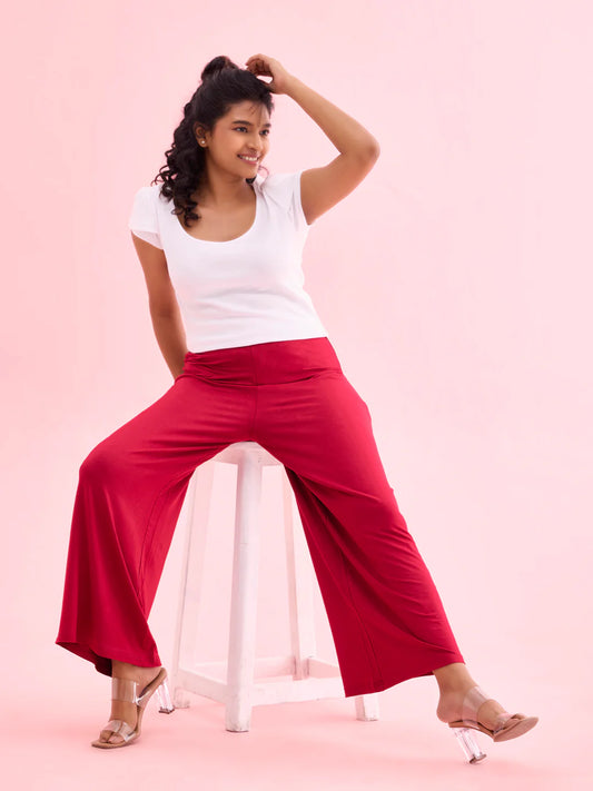 Attractive Red Colored Rayon Palazzo Pant For Women