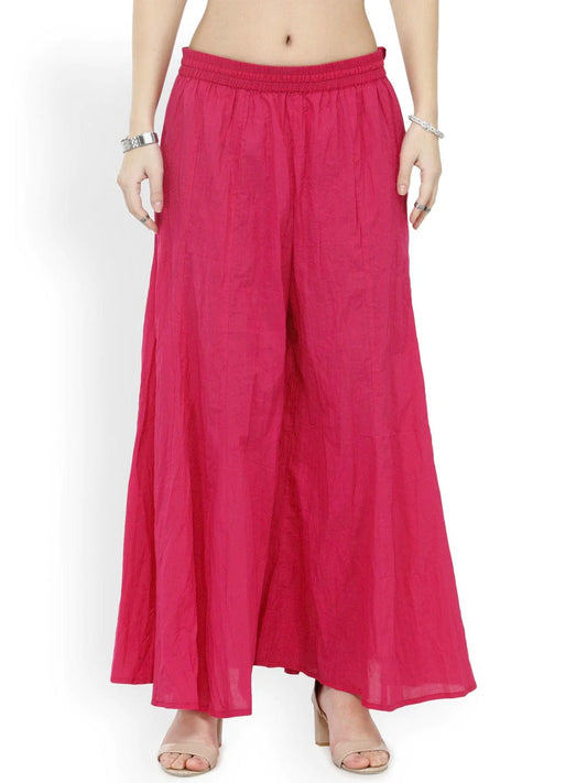 Attractive Bright Pink Crush Cotton Palazzo