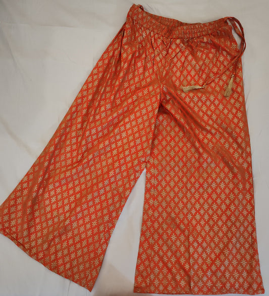 Charming Bright Orange Palazzo With Golden Myka Pattern Print