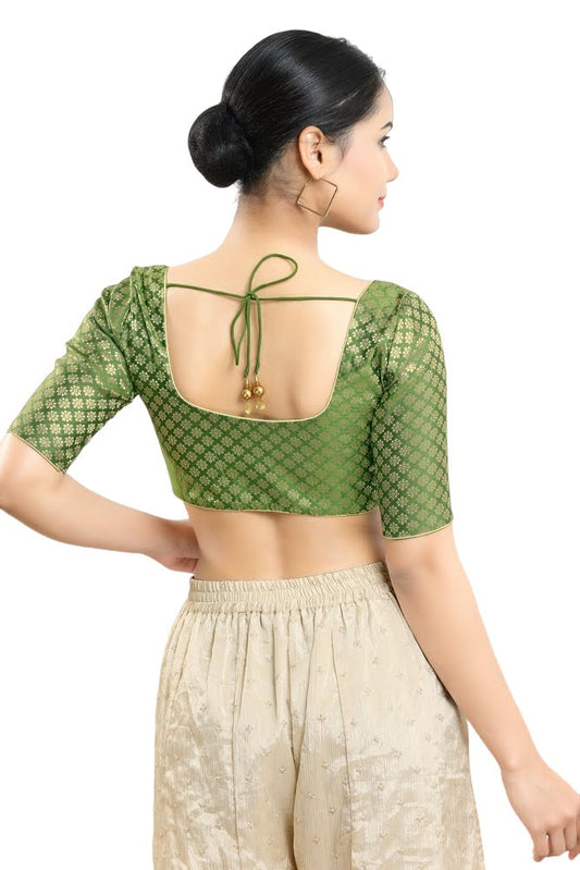 Exquisite Mehendi Green Color Brocade Readymade Blouse For Women