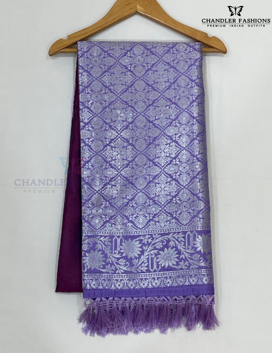Wonderful Purple Color Art Silk Saree With Silver Zari Work For Women