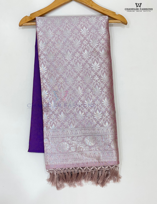 Alluring Dark Purple And Light Blue Soft Silk Saree With Silver Zari Work For Women