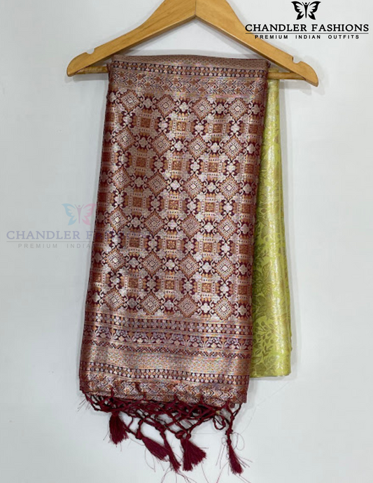 Alluring Light Green And Maroon Soft Silk Saree With Designer Zari Work For Women