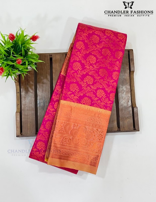 Wonderful Orange Color Pure Kanchi Silk Zari Border Work Saree For Women