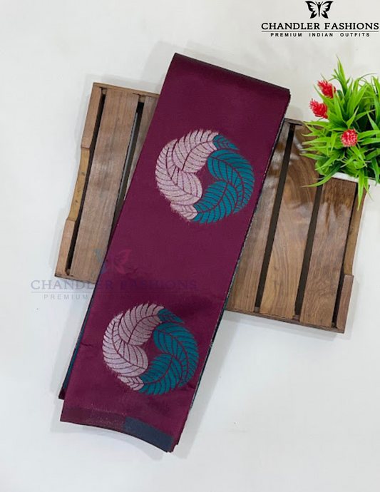 Attractive Dark Purple Color leaf motifs Pure Kanchi Silk Saree For Women