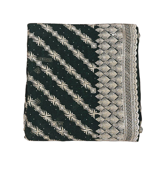Stunning Dark Green Color Georgette Embroidered Work Fancy Saree - PREMIUM QUALITY