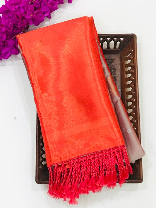 Attractive Orange Colored Contrast Border Art Silk Sarees For Women