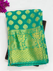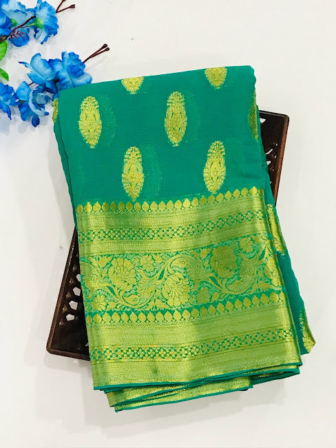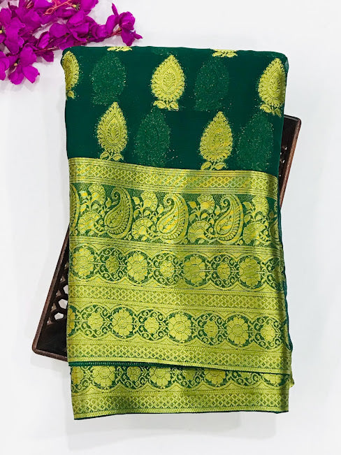 Elegant Green Color Designer Georgette Saree With Butta Motifs And Contrast Border