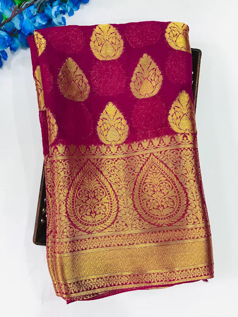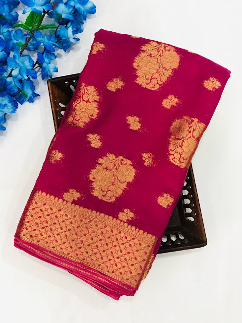 Dazzling Pink Color Designer Georgette Saree With Butta Motifs Contrast Rich Pallu