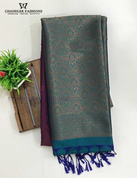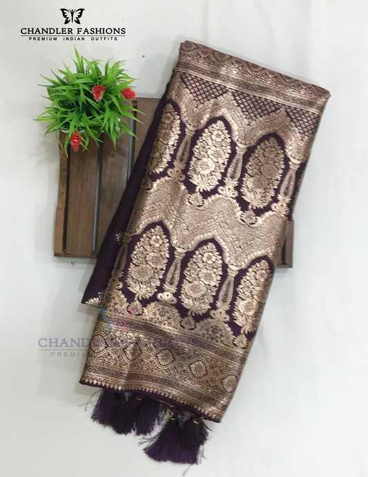 Stunning Dark Purple Color Soft Silk Saree With Zari Work For Women
