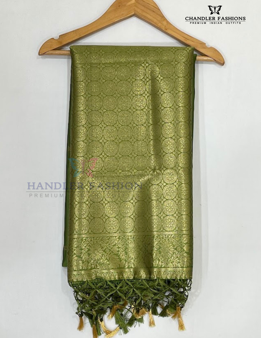 Charming Green Color Soft Silk Saree With Golden Zari Work For Women