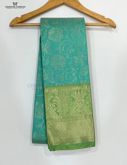 Fabulous Light Green Color Banarasi Soft Silk Saree With Contrast Pallu