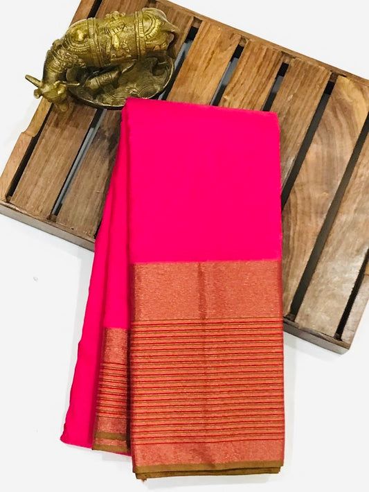 Enchanting Pink Color Art Silk Saree With Golden Zari Bordered For Women