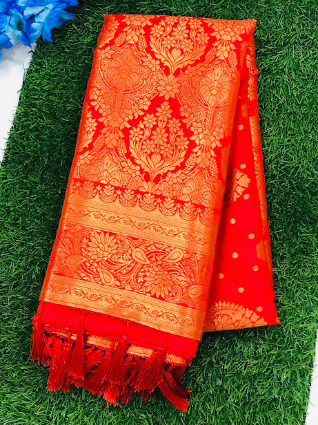 Gorgeous Floral Design Soft Silk Saree With Tassels For Women