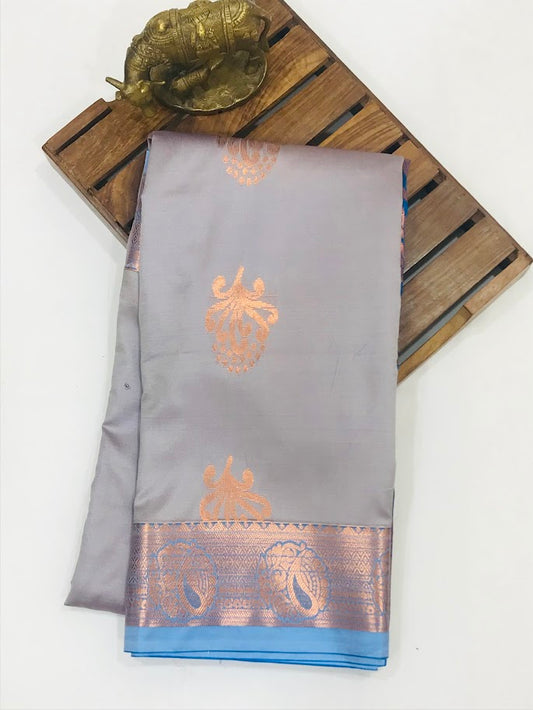 Elegant Gray Color Unique Designed Soft Silk Saree With Zari Bordered For Women