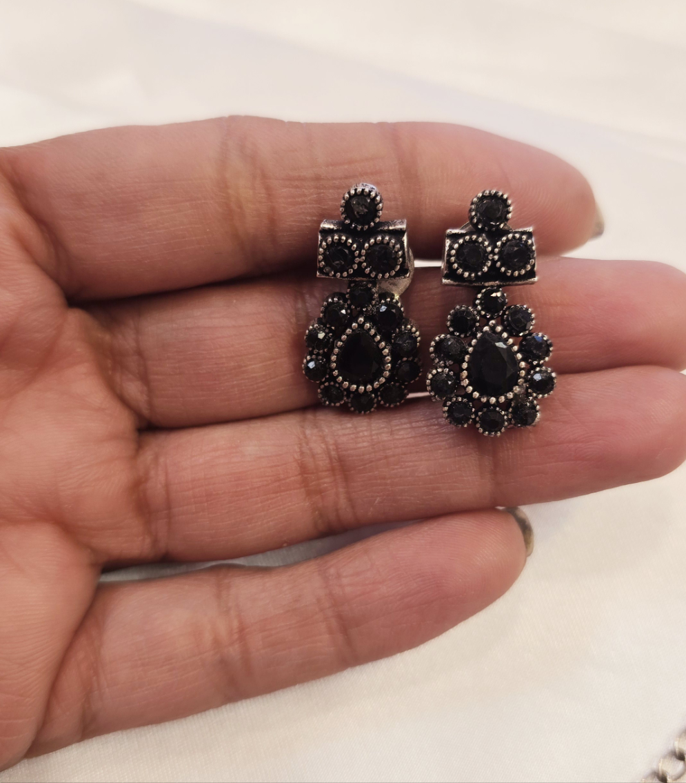 Alluring Floral Designed Silver Plated Black Color Oxidized Necklace Set With Earrings